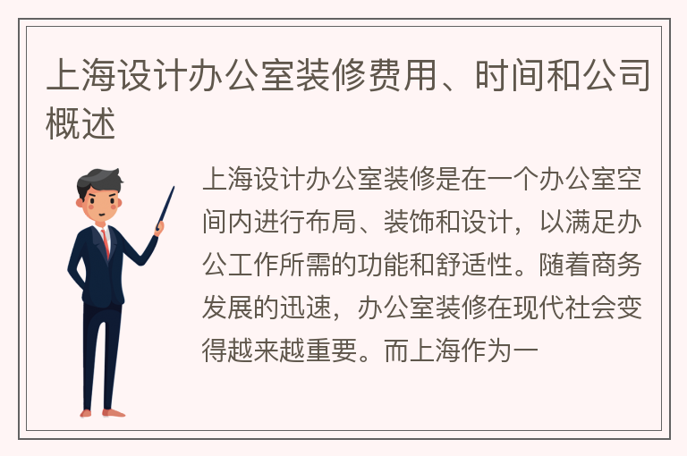 上海设计办公室装修是在一个办公室空间内进行布局、装饰和设计,以满足办公工作所需的功能和舒适性。随着商务发展的迅速,办公室装修在现代社会变得越来越重要。而上海作为一......【点击详情】