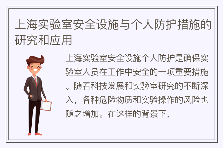 上海实验室安全设施个人防护是确保实验室人员在工作中安全的一项重要措施。随着科技发展和实验室研究的不断深入,各种危险物质和实验操作的风险也随之增加。在这样的背景下,......【点击详情】