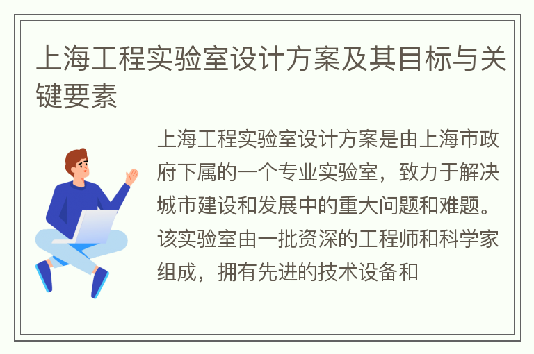 上海工程实验室设计方案是由上海市政府下属的一个专业实验室,致力于解决城市建设和发展中的重大问题和难题。该实验室由一批资深的工程师和科学家组成,拥有先进的技术设备和......【点击详情】