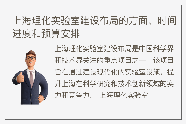 上海理化实验室建设布局的方面、时间进度和预算安排