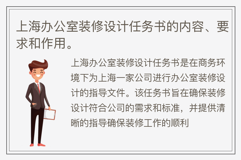 上海办公室装修设计任务书是在商务环境下为上海一家公司进行办公室装修设计的指导文件。该任务书旨在确保装修设计符合公司的需求和标准,并提供清晰的指导确保装修工作的顺利......【点击详情】