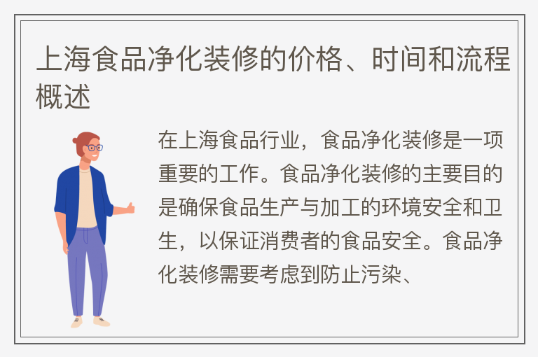 在上海食品行业,食品净化装修是一项重要的工作。食品净化装修的主要目的是确保食品生产与加工的环境安全和卫生,以保证消费者的食品安全。食品净化装修需要考虑到防止污染、......【点击详情】