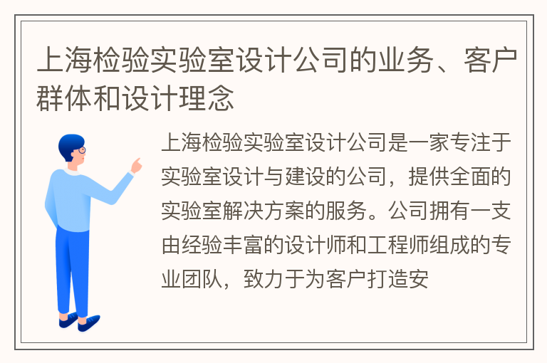 上海检验实验室设计公司的业务、客户群体和设计理念