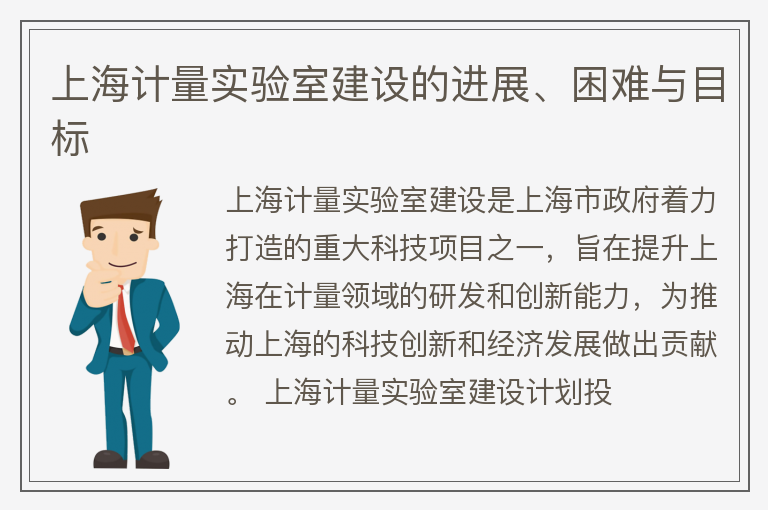 上海计量实验室建设是上海市政府着力打造的重大科技项目之一,旨在提升上海在计量领域的研发和创新能力,为推动上海的科技创新和经济发展做出贡献。 上海计量实验室建设计划投......【点击详情】
