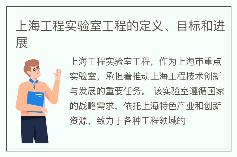 上海工程实验室工程的定义、目标和进展