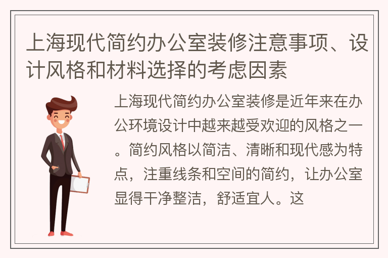 上海现代简约办公室装修注意事项、设计风格和材料选择的考虑因素