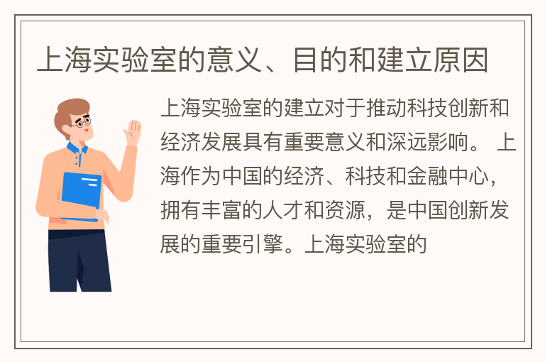 上海实验室的意义、目的和建立原因