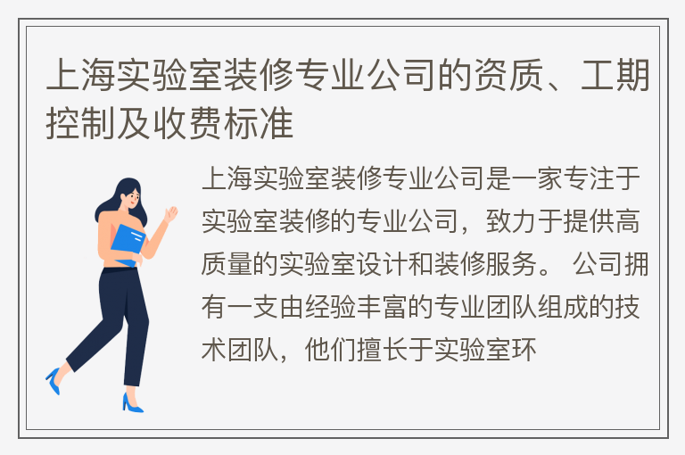 上海实验室装修专业公司的资质、工期控制及收费标准