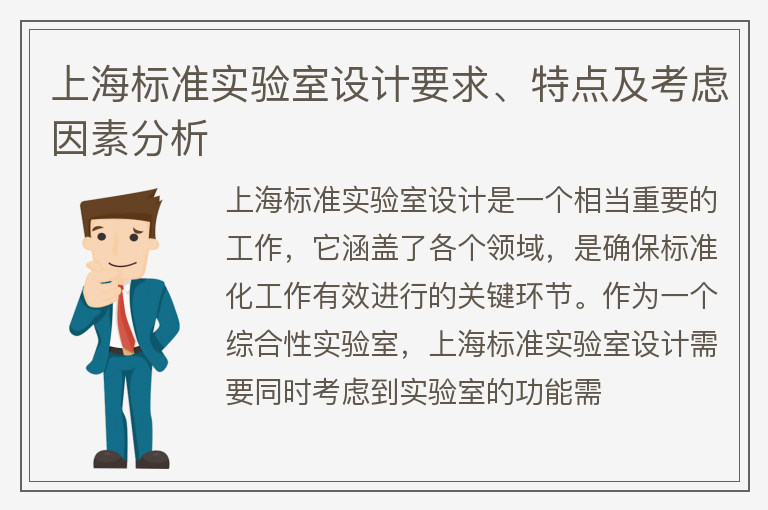 上海标准实验室设计要求、特点及考虑因素分析