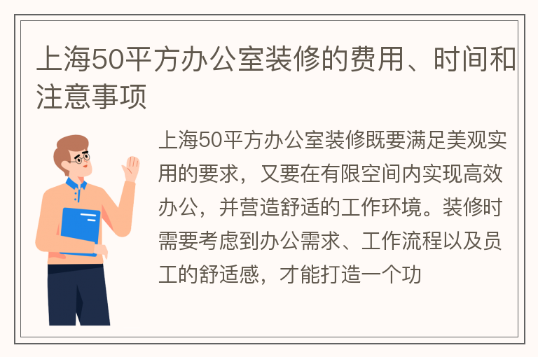 上海50平方办公室装修的费用、时间和注意事项