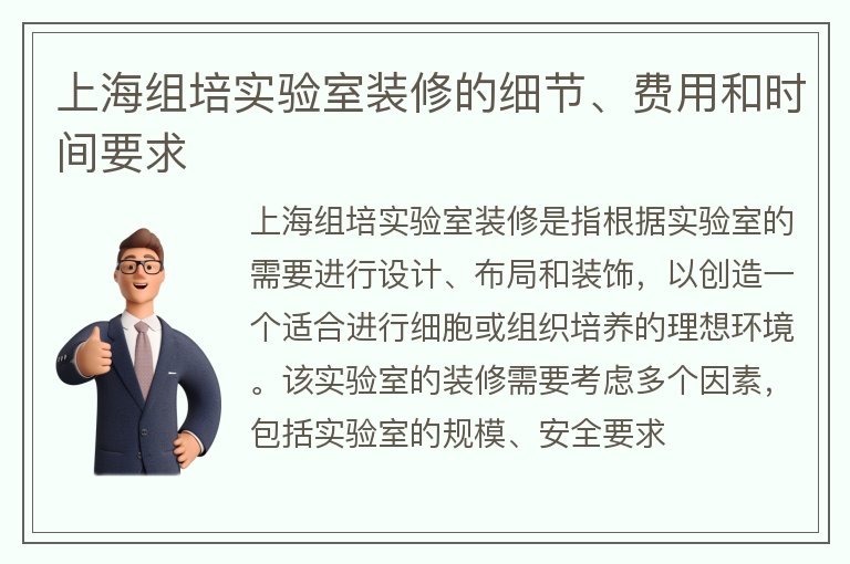 上海组培实验室装修的细节、费用和时间要求