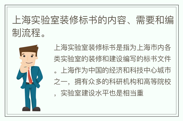 上海实验室装修标书是指为上海市内各类实验室的装修和建设编写的标书文件。上海作为中国的经济和科技中心城市之一,拥有众多的科研机构和高等院校,实验室建设水平也是相当重......【点击详情】