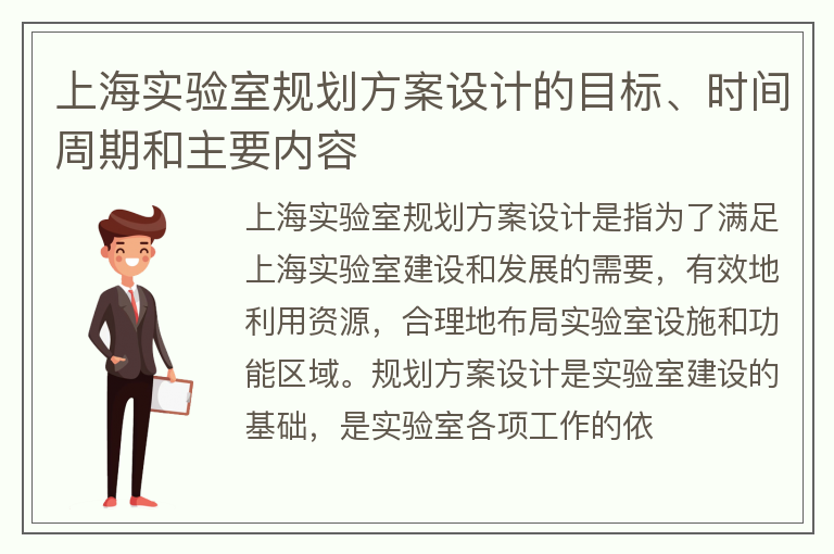 上海实验室规划方案设计的目标、时间周期和主要内容