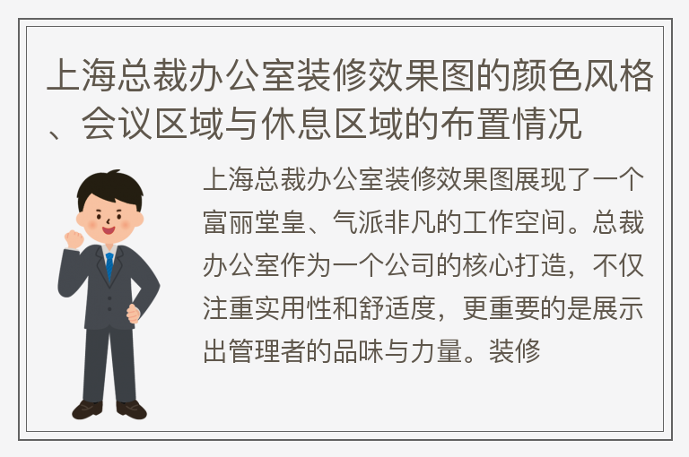 上海总裁办公室装修效果图的颜色风格、会议区域与休息区域的布置情况