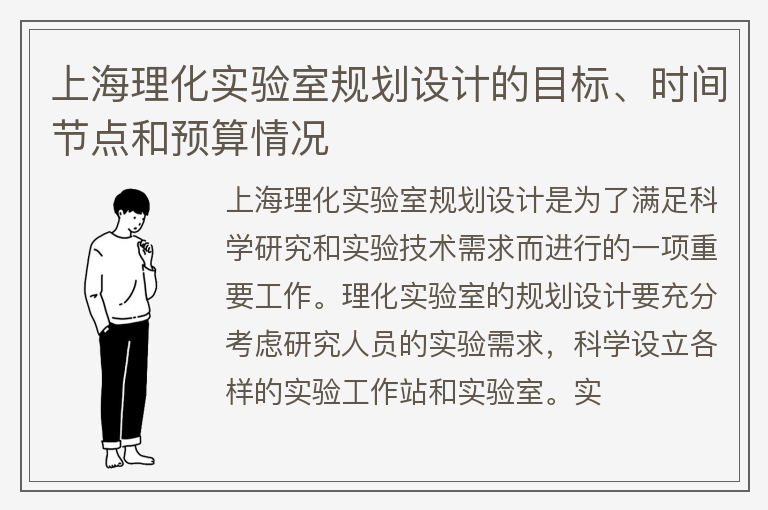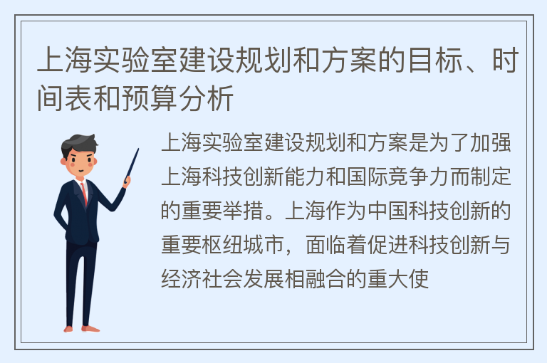 上海实验室建设规划和方案的目标、时间表和预算分析