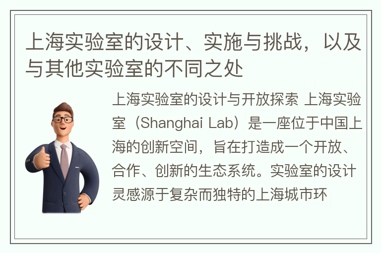 上海实验室的设计、实施与挑战,以及与其他实验室的不同之处
