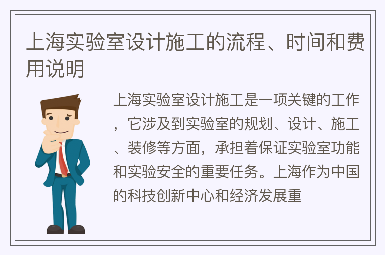 上海临床实验室建设方案是为了满足上海市日益增长的医疗需求而提出的。 随着人口的增加和医疗技术的进步,上海市的医疗需求不断提高。为了能够更好地满足患者的诊断和治疗需求......【点击详情】