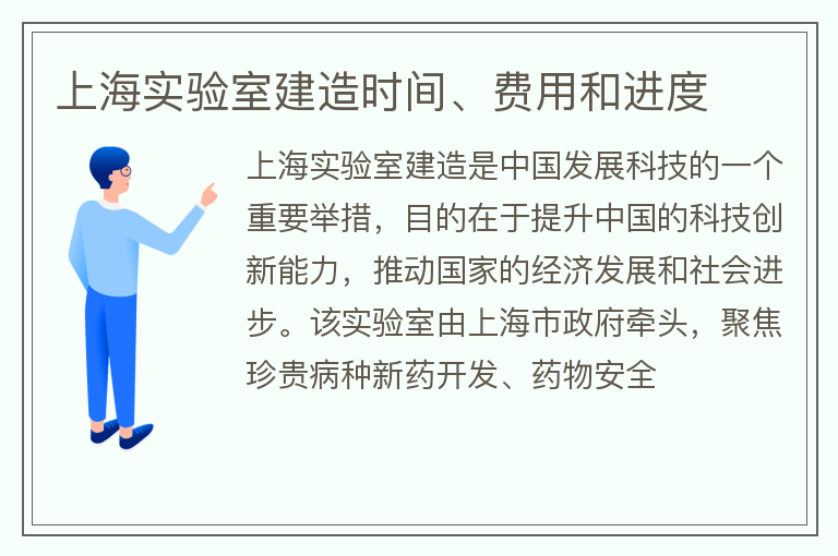 上海实验室建造是中国发展科技的一个重要举措,目的在于提升中国的科技创新能力,推动国家的经济发展和社会进步。该实验室由上海市政府牵头,聚焦珍贵病种新药开发、药物安全性评估、数字医学和生物医药产业智能化等方面进行研究与探索。