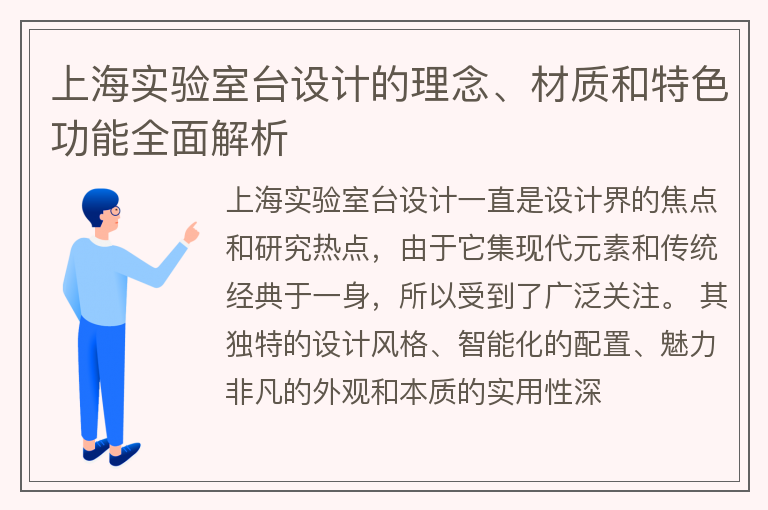 实验室台是实验室中非常重要的设备之一,其设计不仅需要考虑实验室的功能,还需要考虑使用的便捷性和安全性。上海实验室台设计有哪些特色功能呢?下文将依次进行介绍。