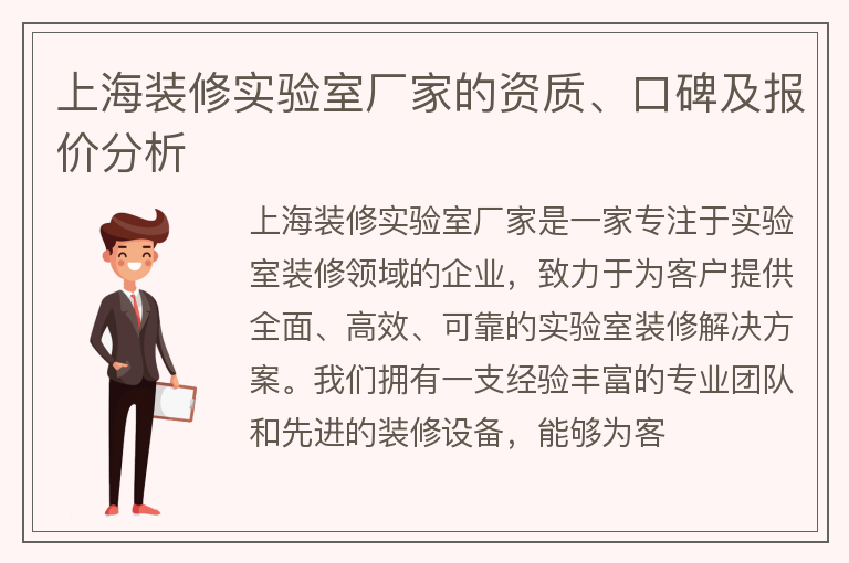随着科学技术的不断进步,实验室在各个领域中扮演着越来越重要的角色。而这其中,实验室的装修设计是至关重要的环节之一。因此,在选择装修实验室的厂家时,选择口碑好的厂家是非常有必要的。那么,哪些上海装修实验室厂家口碑较好呢?接下来,将为大家介绍几家品质较好的上海装修实验室厂家。