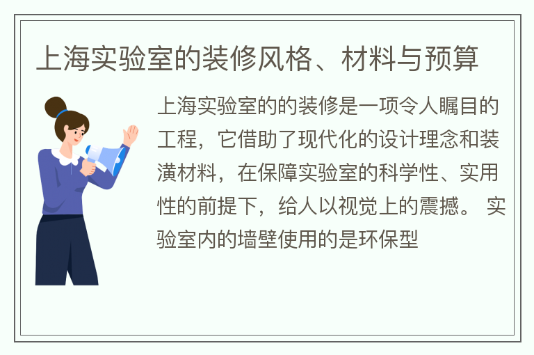 1、简约设计:上海实验室的装修风格非常简洁。墙壁通常为白色或灰色,并且相对于其他办公场所较为冷静稳重。
