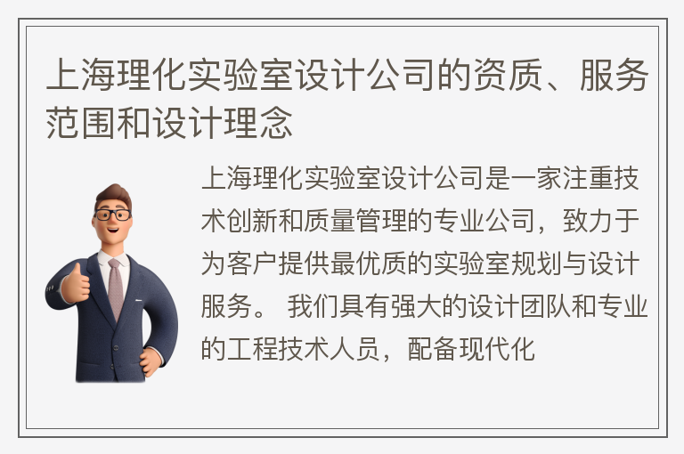 上海理化实验室设计公司有哪些资质?