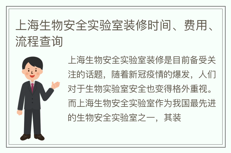 上海生物安全实验室装修是目前备受关注的话题,随着新冠疫情的爆发,人们对于生物实验室安全也变得格外重视。而上海生物安全实验室作为我国最先进的生物安全实验室之一,其装修工作的严谨程度也备受瞩目。