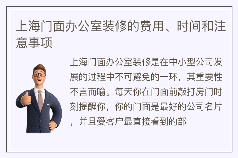 门面办公室的装修费用是企业开展业务活动的重要支出。而在如今的上海这个繁华城市,门面办公室装修更是需要特别关注的一个问题。本文将详细介绍上海门面办公室装修费用问题,希望对您有所帮助。