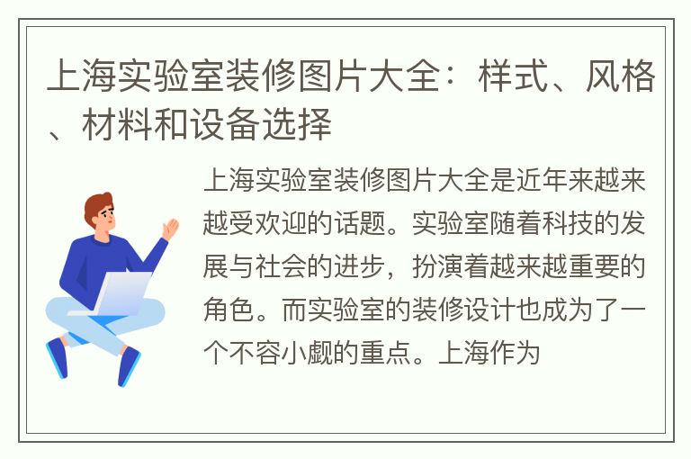 随着科学技术的飞速发展,实验室也逐渐成为大家研究的焦点。而作为实验室装修的重点,不仅要满足科研需要,还要给人一种舒适、安全的感觉。那么上海实验室装修图片大全中都有哪些样式呢?下面就为大家详细介绍。