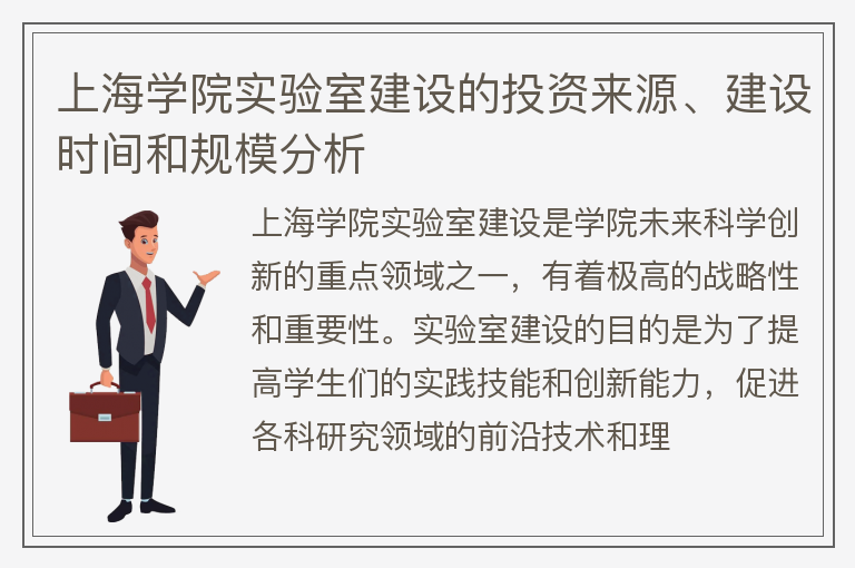 作为一所综合性高等教育机构,上海学院拥有先进的实验室设备,这些设备的建设离不开资金的支持。那么,上海学院实验室建设的投资来源是哪些呢?接下来,本文将对此进行详细阐述。