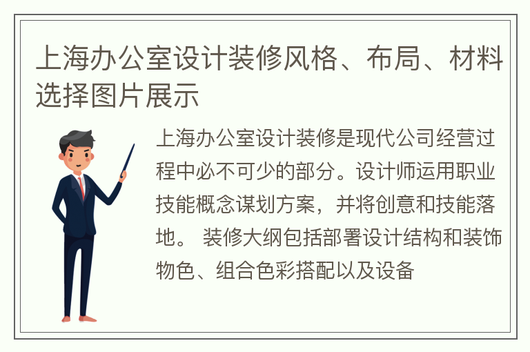 办公室装修是企业形象的重要体现,是员工工作环境的关键要素。在办公室装修中,材料的选择更是至关重要,它直接影响着办公室的使用寿命和装修质量。因此,本文将介绍上海办公室装修材料选择的注意事项。