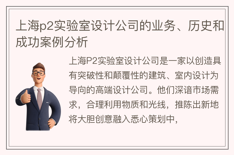 如果你正在寻找一家优秀的实验室设计公司,那么上海P2实验室设计公司绝对是一个值得你考虑的选项。该公司曾经承接了众多著名品牌的实验室设计项目,他们在行业内拥有不俗的口碑。那么,上海P2实验室设计公司的历史有多久呢?请跟随我一起来揭开这个谜底。