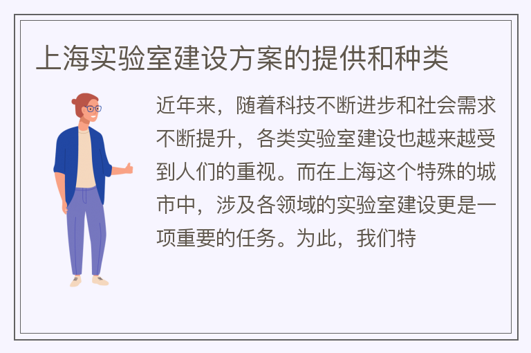 近年来,随着科技不断进步和社会需求不断提升,各类实验室建设也越来越受到人们的重视。而在上海这个特殊的城市中,涉及各领域的实验室建设更是一项重要的任务。为此,我们特别提供上海各种实验室建设方案,以支持实验室建设的良性发展,满足人民对良好生活环境和高品质科技产品的需求。
