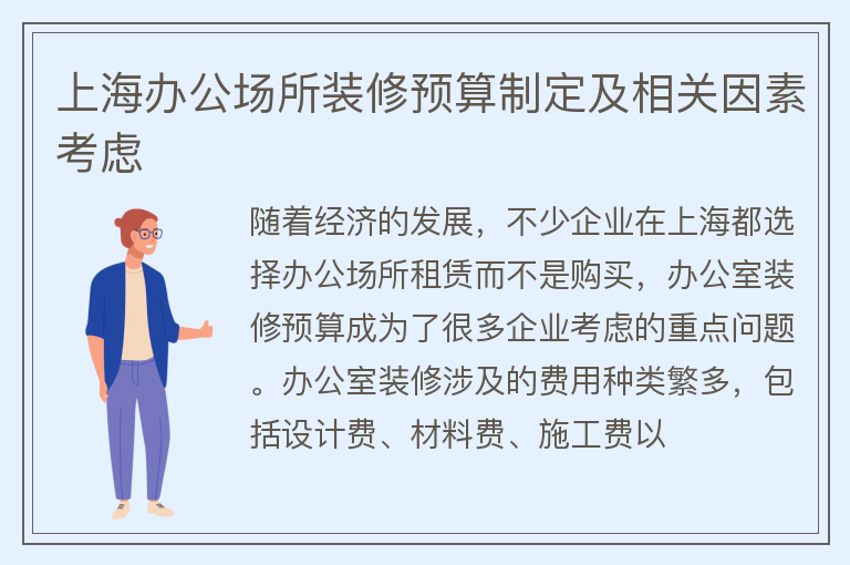 上海办公场所装修预算需要考虑哪些因素?