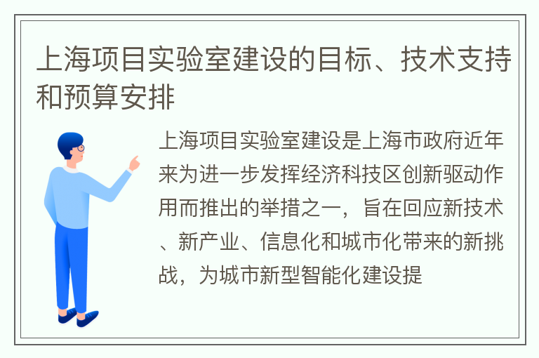 上海项目实验室建设是上海市政府近年来为进一步发挥经济科技区创新驱动作用而推出的举措之一,旨在回应新技术、新产业、信息化和城市化带来的新挑战,为城市新型智能化建设提供前沿技术支持。