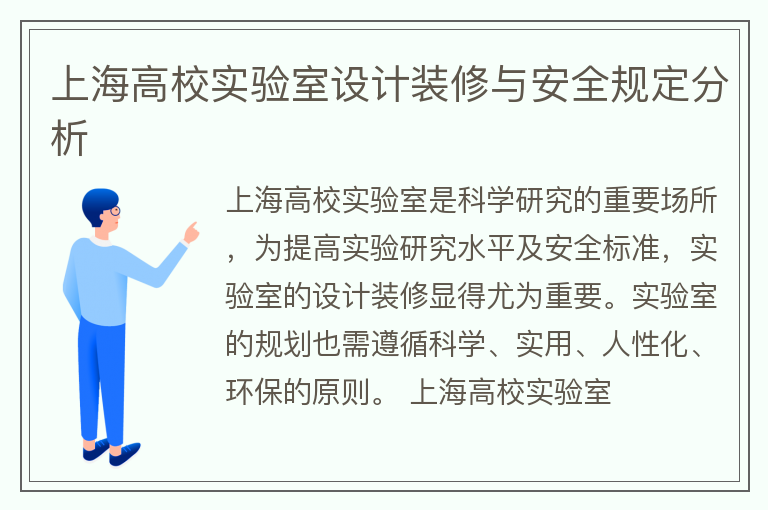 在现代高等教育中,理工类实验室建设是非常重要的一环,而在实验室建设中对建筑面积、装修设计的选择都直接关系着学生的学习效果与实验室的实际运营效率。那么,在上海高校实验室建设中,究竟应该如何选择合适的建筑面积与装修设计呢?接下来就让我们详细了解一下。