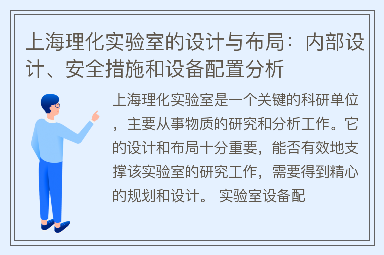 上海理化实验室是一个关键的科研单位,主要从事物质的研究和分析工作。它的设计和布局十分重要,能否有效地支撑该实验室的研究工作,需要得到精心的规划和设计。