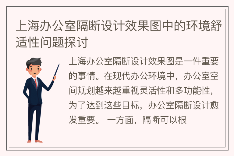 上海办公室隔断设计效果图是一件重要的事情。在现代办公环境中,办公室空间规划越来越重视灵活性和多功能性,为了达到这些目标,办公室隔断设计愈发重要。