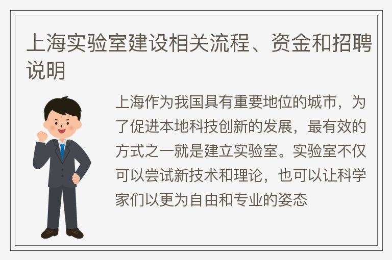 未来科技与创新无处不在,而实验室就是创新的核心场所之一。上海正越来越多地推进实验室建设,各种研发中心、高新企业纷纷建立自己的实验室。那么,筹建实验室到底有哪些步骤?答案将在本文中为您详细解答。