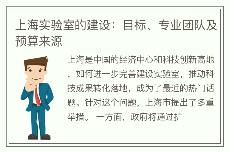上海是中国的经济中心和科技创新高地,如何进一步完善建设实验室,推动科技成果转化落地,成为了最近的热门话题。针对这个问题,上海市提出了多重举措。