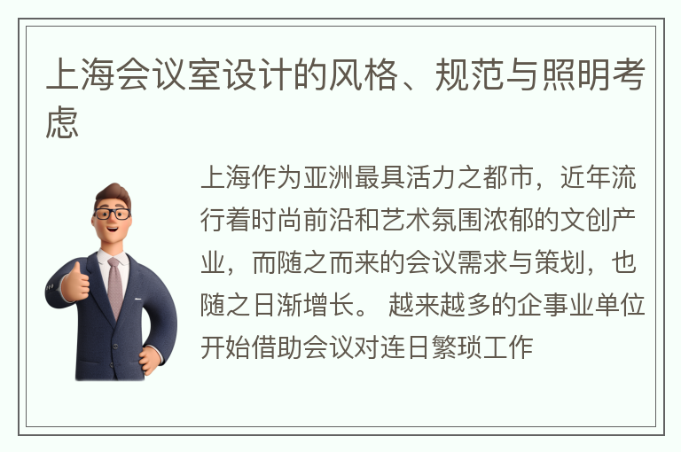 会议室作为企业内部沟通交流的重要场所,它的设计风格直接关系到企业形象的展示和员工工作体验的感受。在上海这个经济中心城市,会议室设计风格也有着自己的特点。本文将对上海会议室设计的风格进行详细探讨和分析。