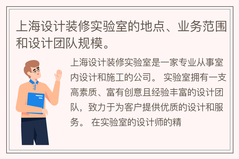 上海设计装修实验室是一家专业从事室内设计和施工的公司。