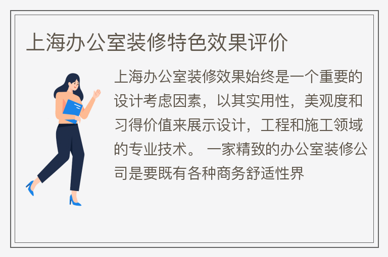 如果你正在寻找一家靠谱的上海装修公司,那么不妨来了解一下上海办公室装修效果如何?从设计到施工,上海装修公司注重细节,力求为客户打造出完美的办公环境。下面,本文将从五个方面为您详细介绍。