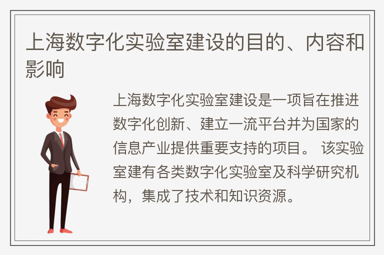 上海数字化实验室建设是一项旨在推进数字化创新、建立一流平台并为国家的信息产业提供重要支持的项目。