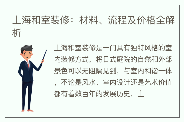 随着人们对于传统文化的认识愈发深入,在上海地区和室装修越来越受到追捧。而和室装修是需要细心布局和精心施工的,其中还存在一些装修流程上的问题需要注意。那么在上海地区,和室装修的流程究竟是怎样的呢?接下来为您详细阐述。