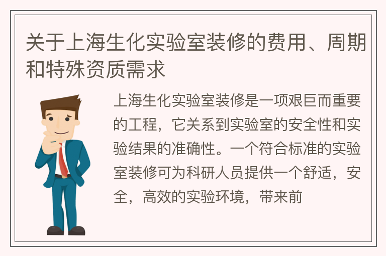 作为化学、医学等领域的重要科研场所,生化实验室的装修至关重要。生化实验室的装修需要考虑到许多因素,影响装修费用的因素也非常多。那么,究竟上海生化实验室装修需要多少费用呢?下面就让我们来详细了解一下。