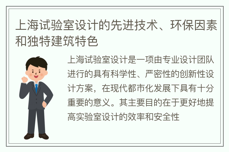 在如今的社会中,环保意识不断提高,各种行业都在积极采取环保措施。其中,试验室作为科研实验的重要场所,环保因素也成为了设计中必不可少的考虑要素。那么,上海试验室设计又考虑了哪些环保因素呢?下面将从以下五个小标题对此进行具体分析。