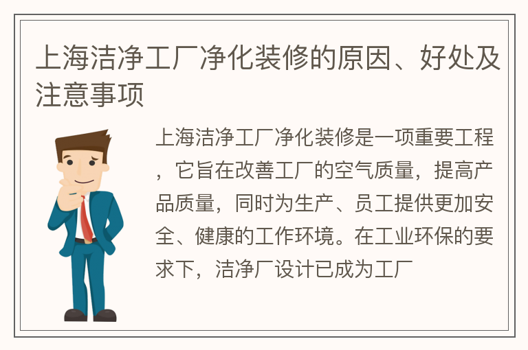 上海洁净工厂是一家专业从事洁净车间和无尘车间的设计、建设及运营管理的企业。为了满足客户对于空气质量和洁净度的要求,公司开始使用净化装修,效果显著。那么,净化装修对上海洁净工厂有哪些好处呢?下面将从五个方面进行详细阐述。