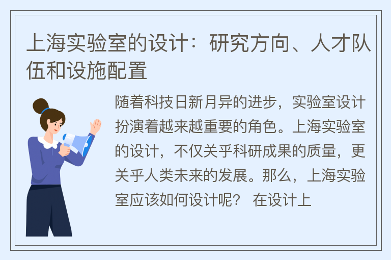 随着科技日新月异的进步,实验室设计扮演着越来越重要的角色。上海实验室的设计,不仅关乎科研成果的质量,更关乎人类未来的发展。那么,上海实验室应该如何设计呢?