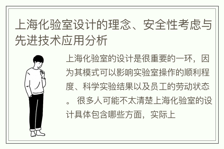 上海化验室的设计是很重要的一环,因为其模式可以影响实验室操作的顺利程度、科学实验结果以及员工的劳动状态。